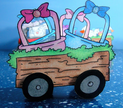 I finally entered one of Dustin Pike's challenges!! The first one I missed cause I was overwhelmed with making birthday cards. The second one I just missed entering my baby shower card and gift box by only 20 minutes :(. So I am over the moon that I made this one! I created this train for Pike's Playground with the challenge being "Anything But A Card with an Easter Theme". All images are from Doodle Dragon Studios and colored with Prismacolor pencils. Here are some close ups of each piece...